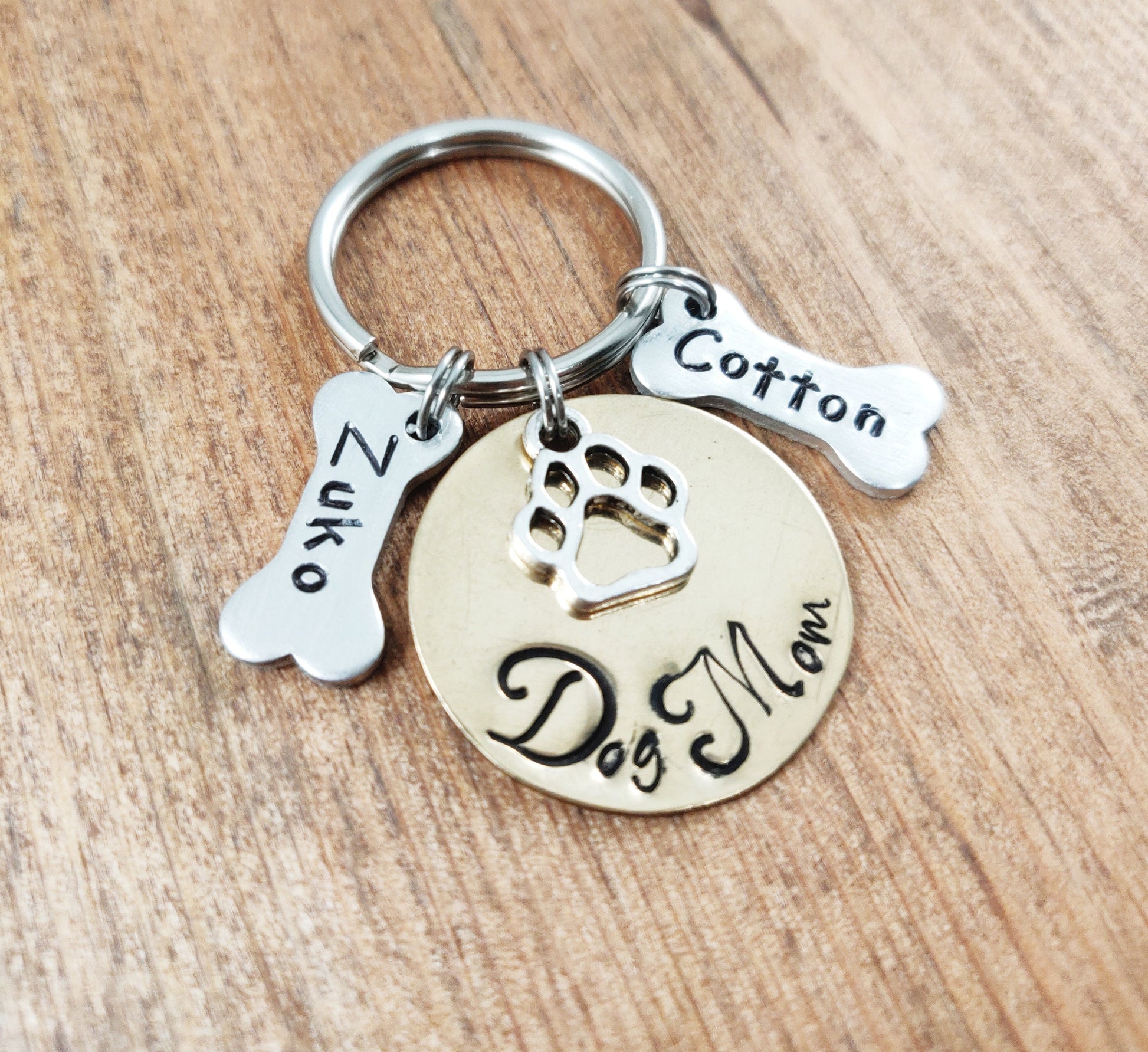 Dog Mom Keychain, Keychain with Dog Names, Dog Mom Keychain with Names, Dog Lover, Dog Names, Dog Name Keychain, Personalized Keychain, Brss