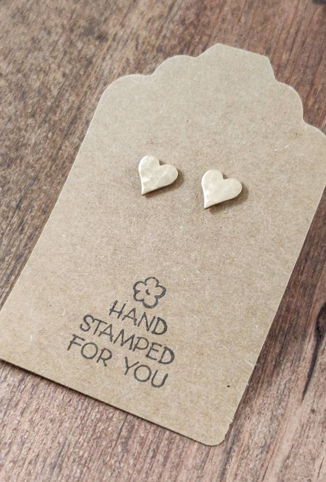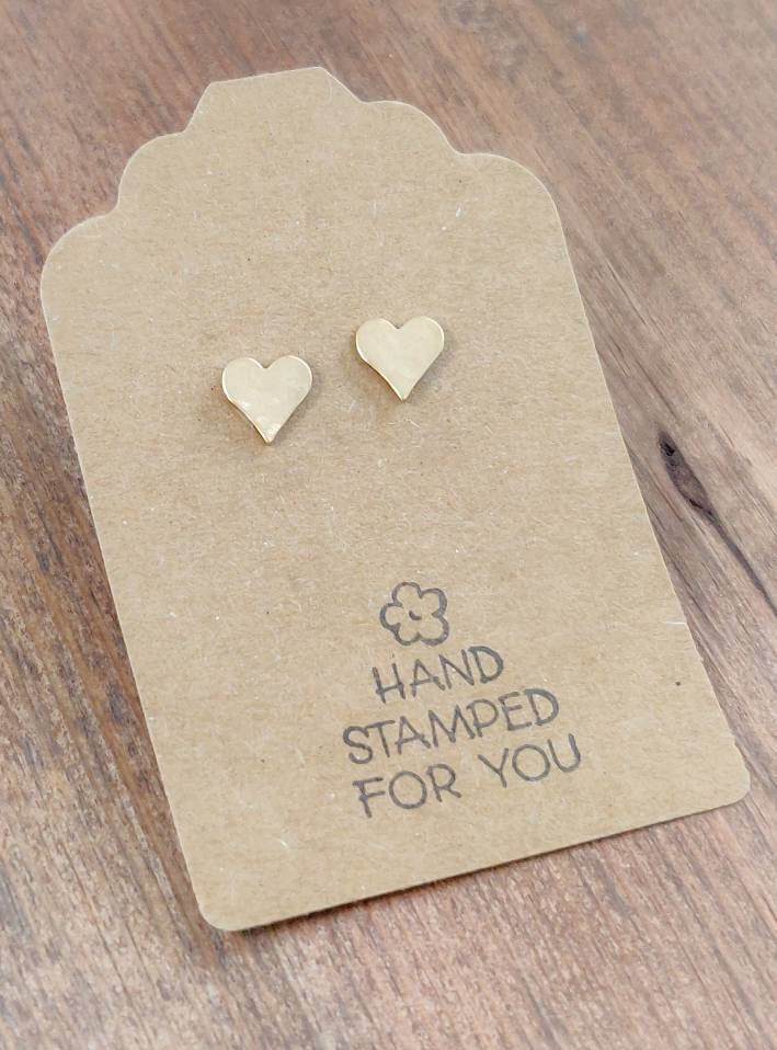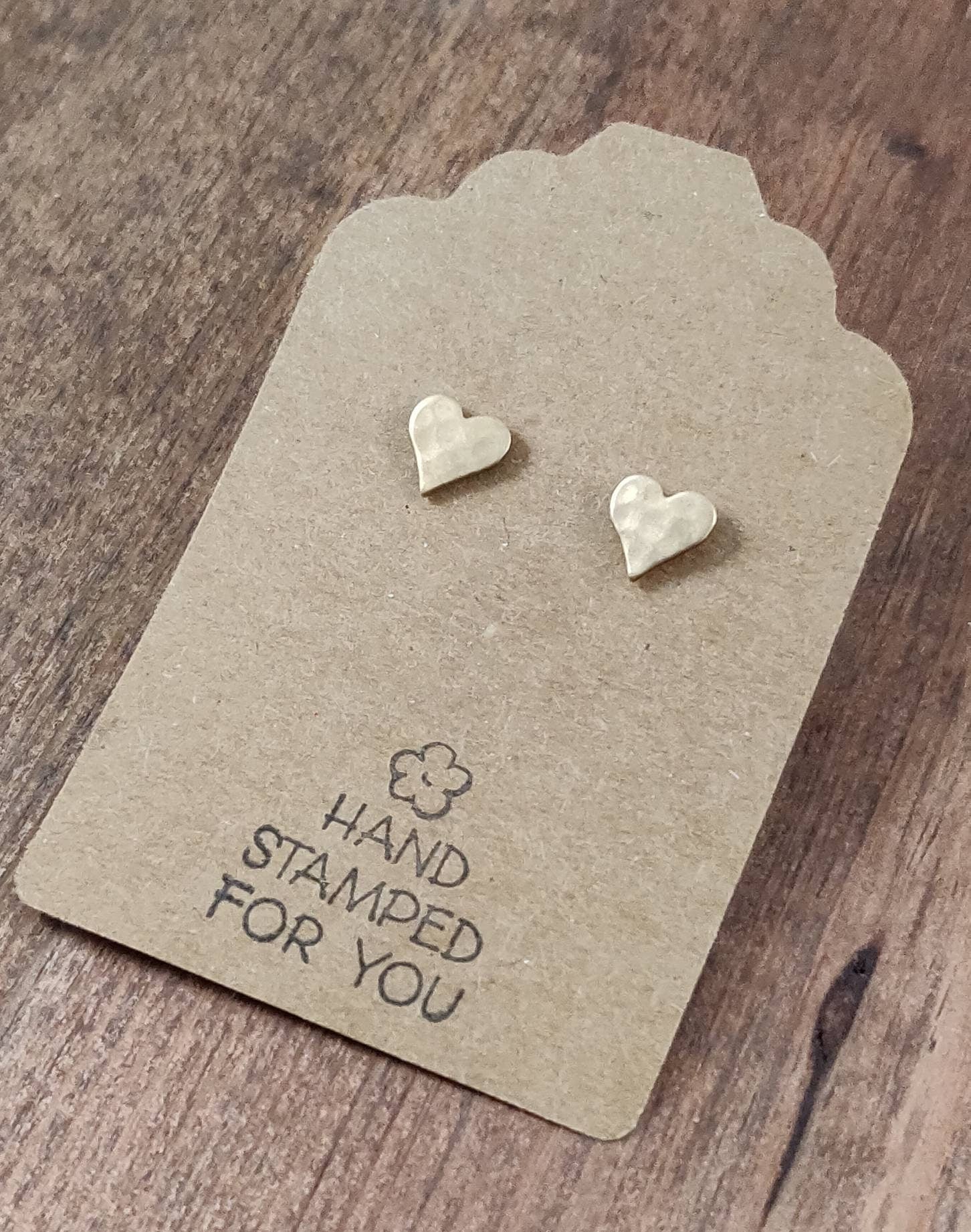 Small Gold textured heart handmade earrings. Push back closures on back.