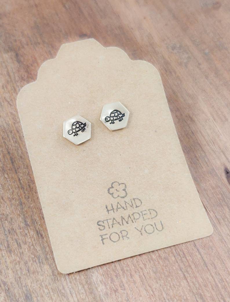Gold Stud Earrings, Turtle Earrings, Small Earrings, Dainty Earrings, Hand Stamped Earrings, Turtle Jewelry, Small Gold Earrings