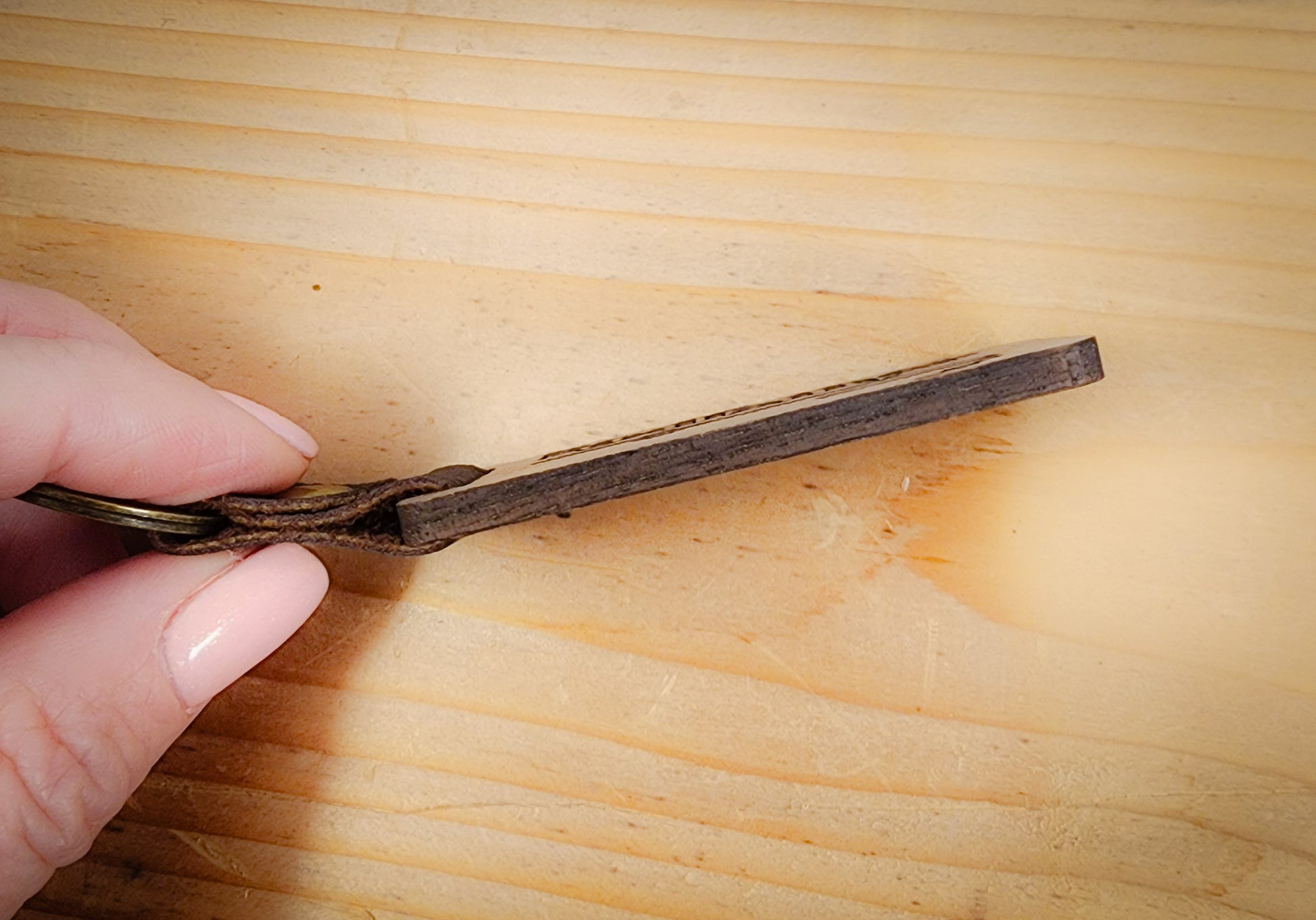 Surprise your dad with a unique gift that will melt his heart! Our personalized engraved keychain for dad is made of wood, brass, and leather, and features the words "For the friend, the support, the dad you are, I love you." You can also add a personal message on the back for an extra special touch. Perfect for Father's Day!