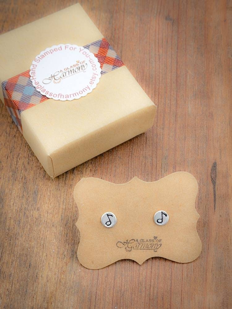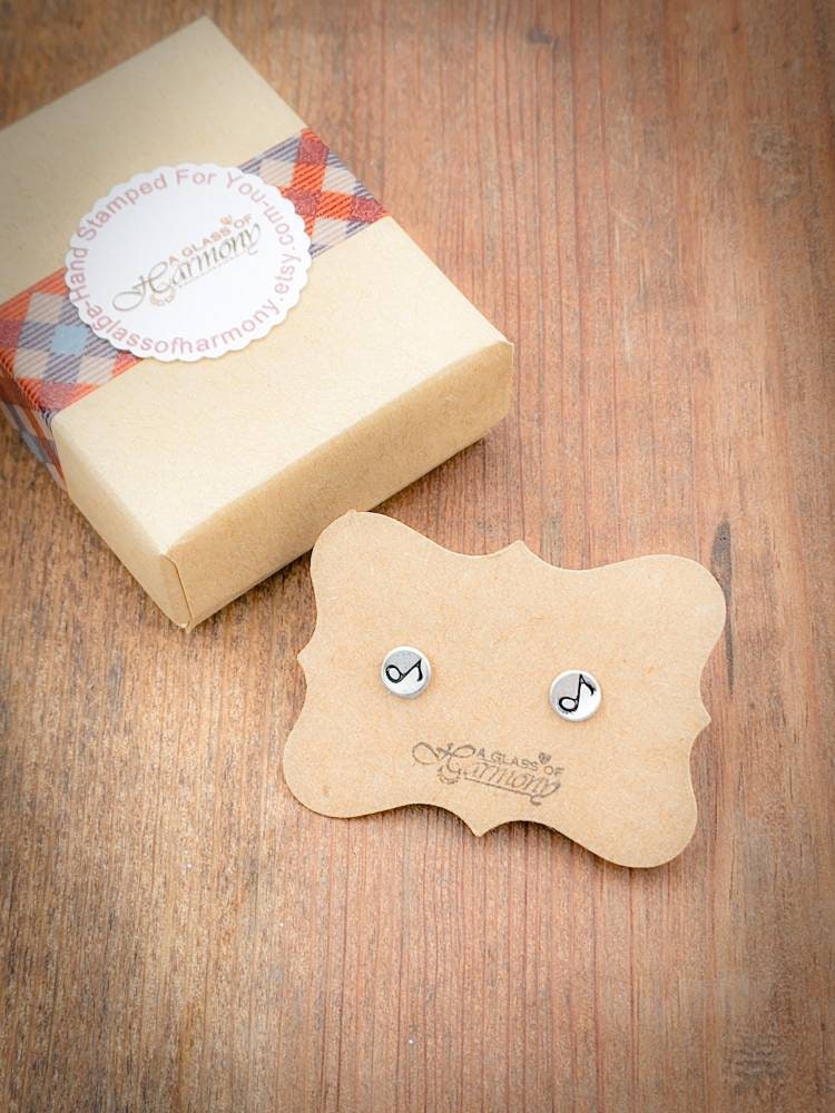 Silver Stud Earrings, Music Note Earrings, Small Earrings, Dainty Earrings, Hand Stamped Earrings, Music Note Jewelry, Small Silver Earrings