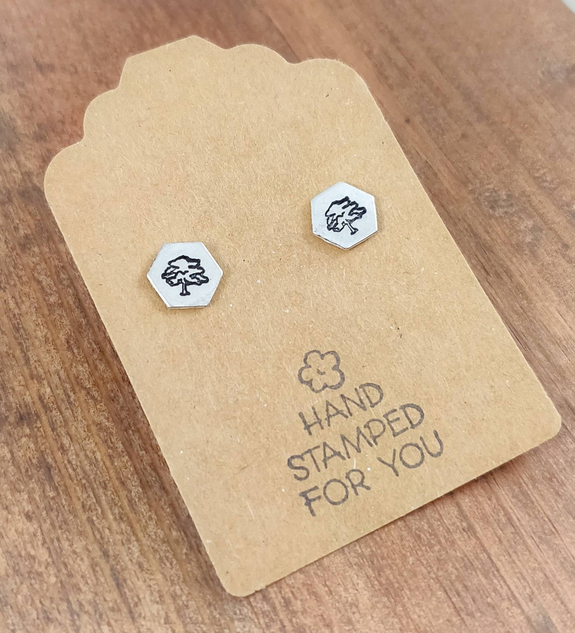 Hand Stamped Tree Earrings