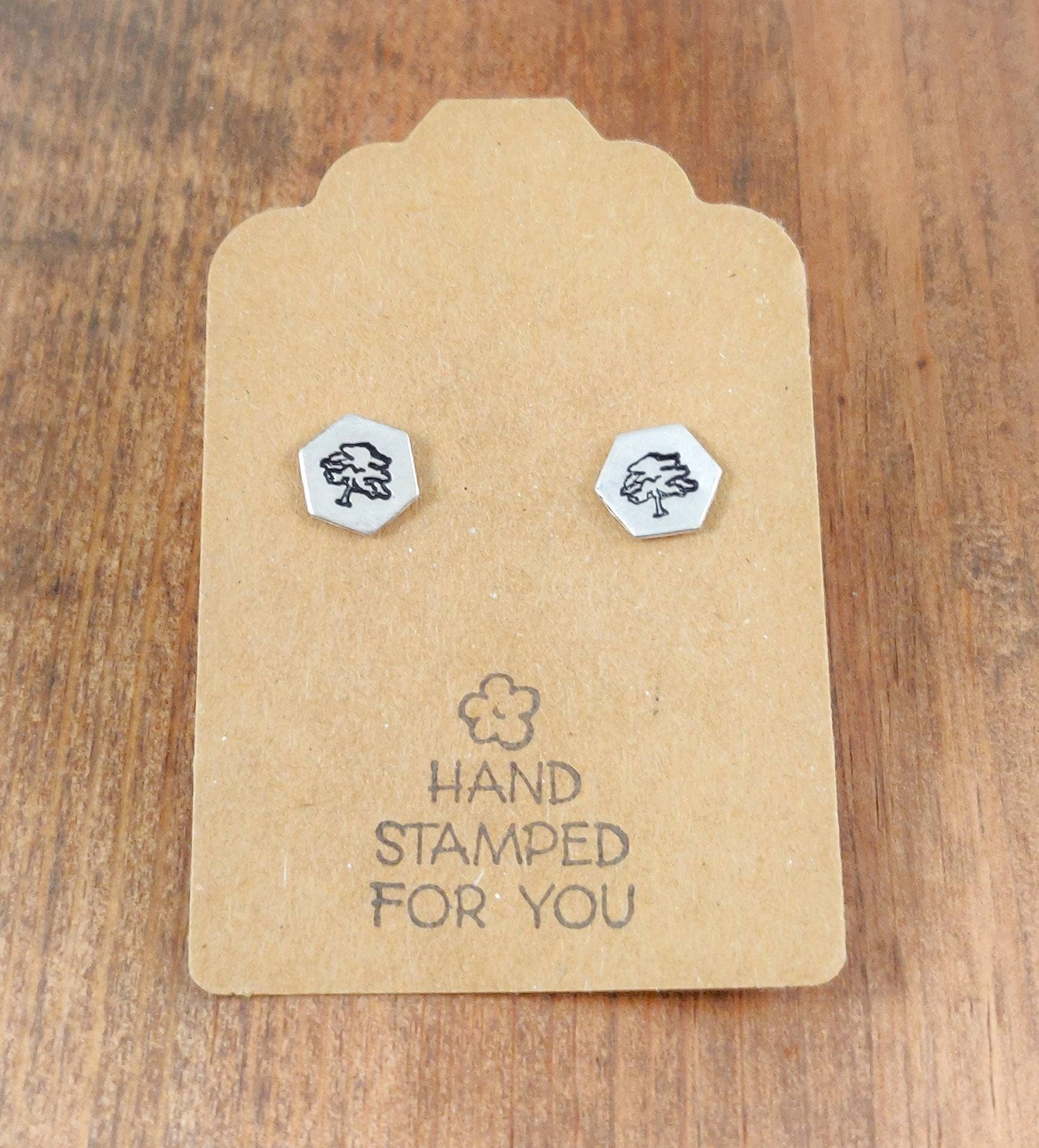Silver Stud Earrings, Tree Earrings, Small Earrings, Dainty Earrings, Hand Stamped Earrings, Tree Earrings, Small Silver Earrings